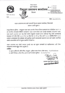 जिल्ला प्रशासन कार्यालय चितवनले सूचना जारी गर्दै आजदेखि १९ चैतसम्म राति ६ घण्टा बन्द गरिएको जानकारी गराएको हो ।