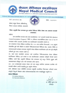 काउन्सिलका अनुसार नेपाल मेडिकल काउन्सिल ऐन २०२० तथा सम्बन्धित नियमावली २०२४ बमोजिम कुनै पनि विदेशी वा स्वदेशी चिकित्सक तथा संस्थाले नेपालभित्र चिकित्सा सेवा, परामर्श, शिविर वा उपचारसम्बन्धी कार्यक्रम सञ्चालन गर्नुअघि अनिवार्य रूपमा दर्ता र पूर्व स्वीकृति लिनुपर्ने प्रावधान छ ।